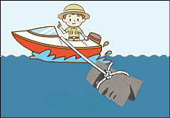 石像をロープでボートからぶらさげるようにして運べばよい。