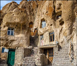 岩山を削って造り上げたもの。今も人々が暮らしている。