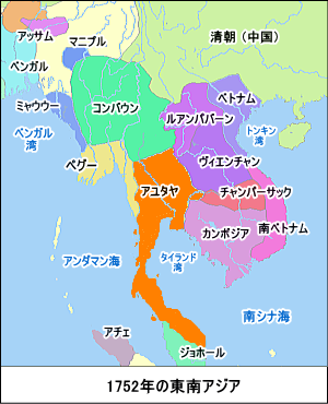 | 1767年 | ビルマ軍、タイのアユタヤ王朝を滅ぼす |