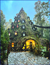外壁が草や苔に覆われ、吊り橋を渡って中に入るため、PRGの主人公になった冒険気分が味わえる。