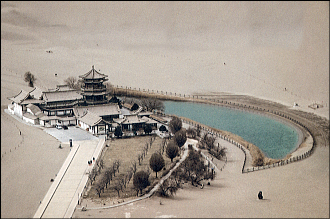 月牙泉は、その郊外にある三日月の形をした泉である。