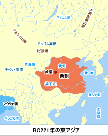 BC256年、周を滅亡させ、BC221年、最後に残った斉を破って、中国を統一した。