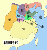| 戦国七雄 秦(BC778-BC206年) 楚(BC1100-BC223年) 斉(BC1046-BC221年) 燕(BC1100-BC222年) 韓(BC403-BC230年) 魏(BC403-BC225年) 趙(BC403-BC228年) |