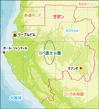 中央部にあるロペ国立公園は、1万5000年前の氷河期に形成された生態系が残存し、