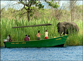 特徴は、水辺に生息するカバやワニ、そしてゾウといった動物をボートやカヌーに乗って間近で見られるところ。