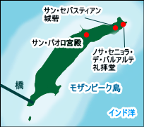 長さ3km、幅200〜500m の小さな島だが、かつてポルトガル領東アフリカの首都だったことから