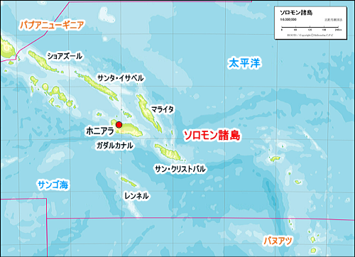 南西太平洋、ソロモン諸島のうちブーゲンビル島およびブカ島を除く島々からなる国。