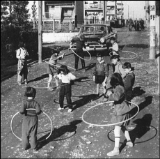 体を振って落ちないように回して遊ぶ、直径1mほどのプラスチック製の輪。