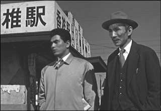 お時の同僚ふたりが、商事会社社長の安田(山形勲)を東京駅で見送ったとき、