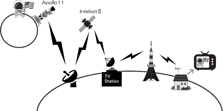 そして、同年 7月には、アポロ 11号による月面からの生中継が行われた。