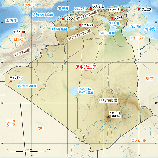アフリカ北西、マグレブ三国(チュニジア、アルジェリア、モロッコ)中央の国。