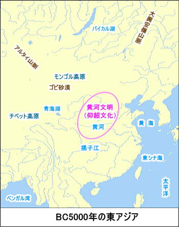 黄河文明が黄河中流域で誕生したのは、BC5000年頃とされる。文明の前半は仰韶(ぎょうしょう)文化