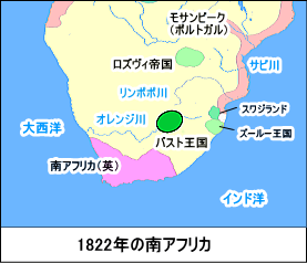 「バスト王国」(Kingdom of Basuto 1822年−1868年)が建設された。